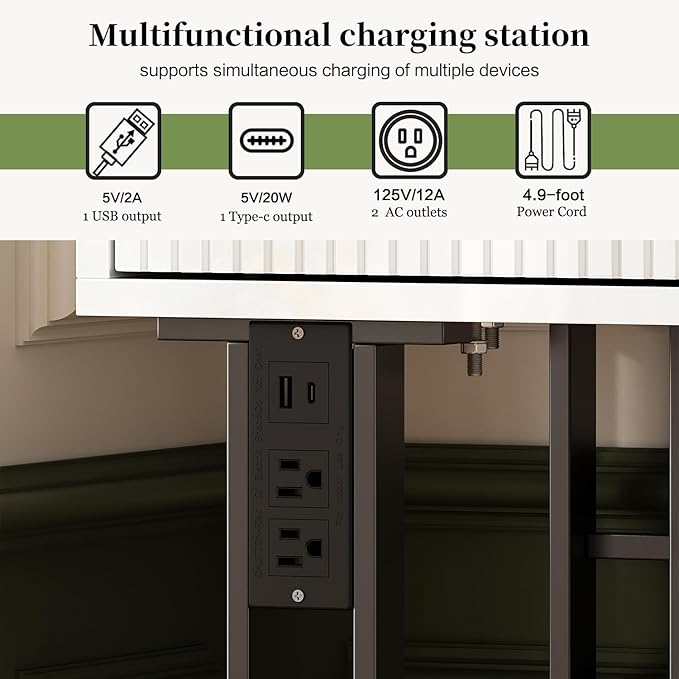 - 【Built-in Power Strip】Upgrade design!This makeup table equipped with a power strip that has 2 standard plug sockets ,1 USB ports and 1 T-C with a 4.9-foot power cord,convenient for the LED lights,hairdryer, curling iron, and charge your phone, tablet, or other electronics.