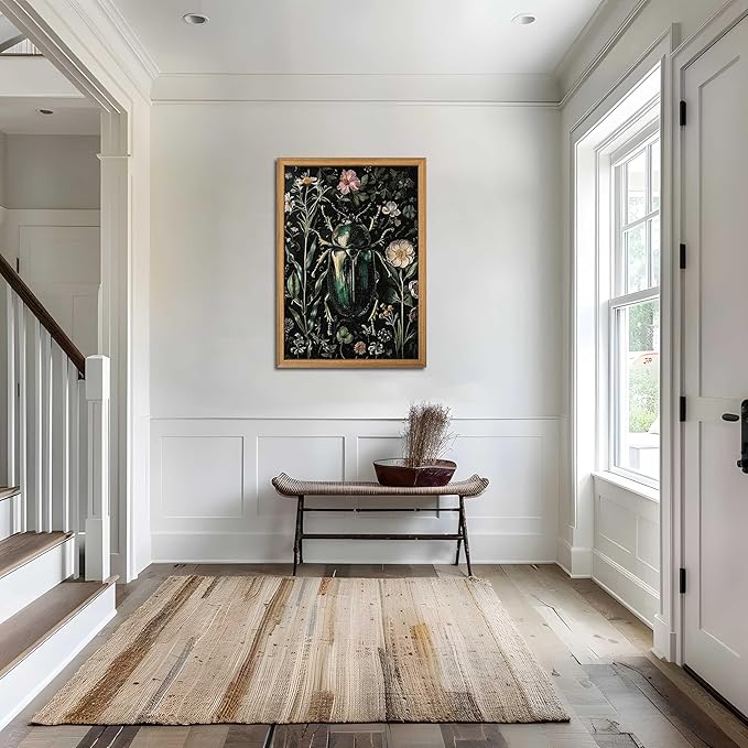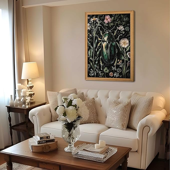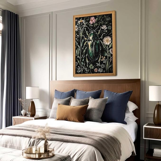 - 【Classic Vintage Wall Art】This mural combines classic vintage style with exquisite beetle and floral patterns to create a unique vintage Gothic atmosphere, adding an elegant and natural touch to your home. Perfect for decorating your bedroom, office, living room or study room