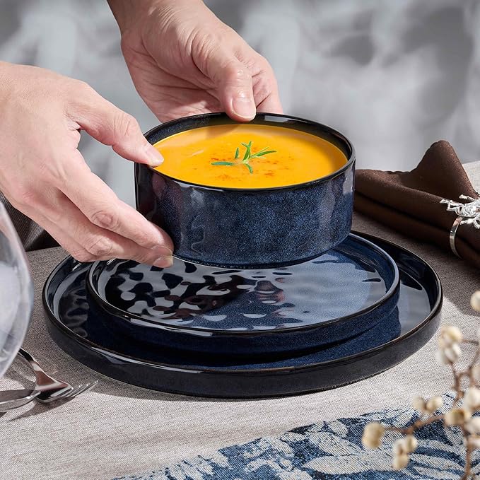 - Healthy and Sturdy Material, the stoneware set boasts a sturdy construction, crafted from natural clay and food grade glazes, fired at a high heat up to 2340°F for long-lasting use, chip and scratch-resistant, made of lead-free and cadmium-free materials, it ensures that your dining experience is safe without any harmful substances