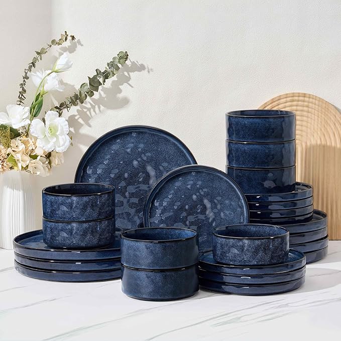 Herogo 24 Pieces Dinnerware Sets for 8, Plates and Bowls Sets for Home Serving, Stoneware Dinning Dishes, Dishwasher & Microwave Safe, Starry Blue