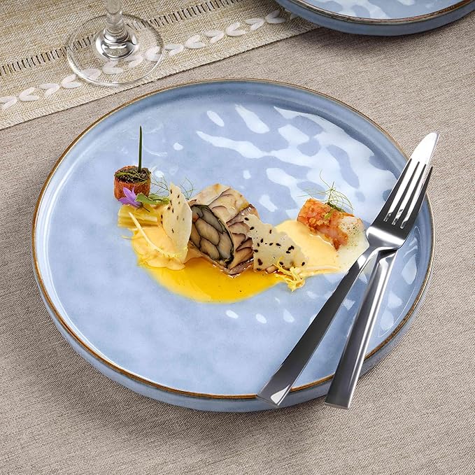 - Exquisite Wavy Glaze Surface, the dishes set showcases a unique ripple texture that micmic ocean waves, capturing light and shadow to create a touch of elegance and whimsy to your dining experience, the elegant and refined look will impress your family or guests, making every meal a special occasion