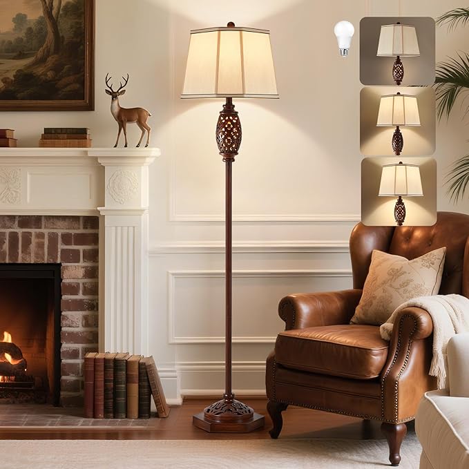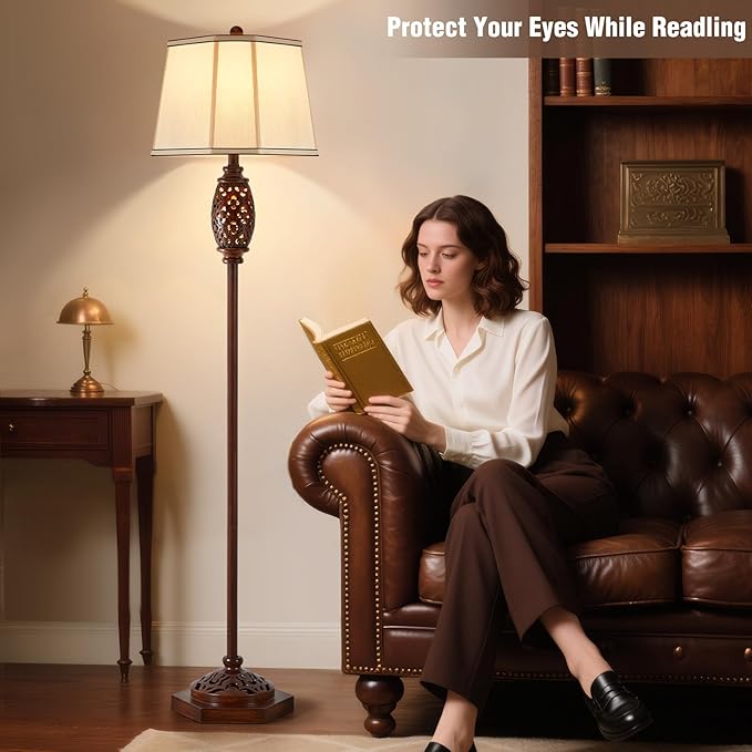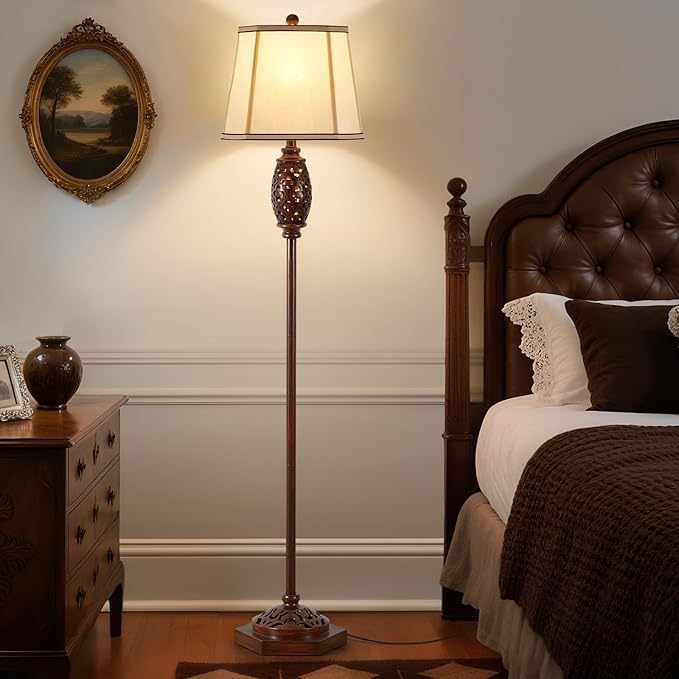 Luvkczc Vintage Floor Lamp - Brown Carved Resin with Hollow Light Design, Rustic Standing Lamp for Living Room, Bedroom, Study(Bulb Included)