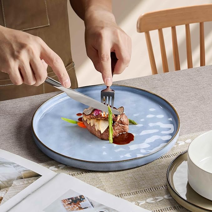 - Exquisite Wavy Glaze Surface, the dishes set showcases a unique ripple texture that micmic ocean waves, capturing light and shadow to create a touch of elegance and whimsy to your dining experience, the elegant and refined look will impress your family or guests, making every meal a special occasion