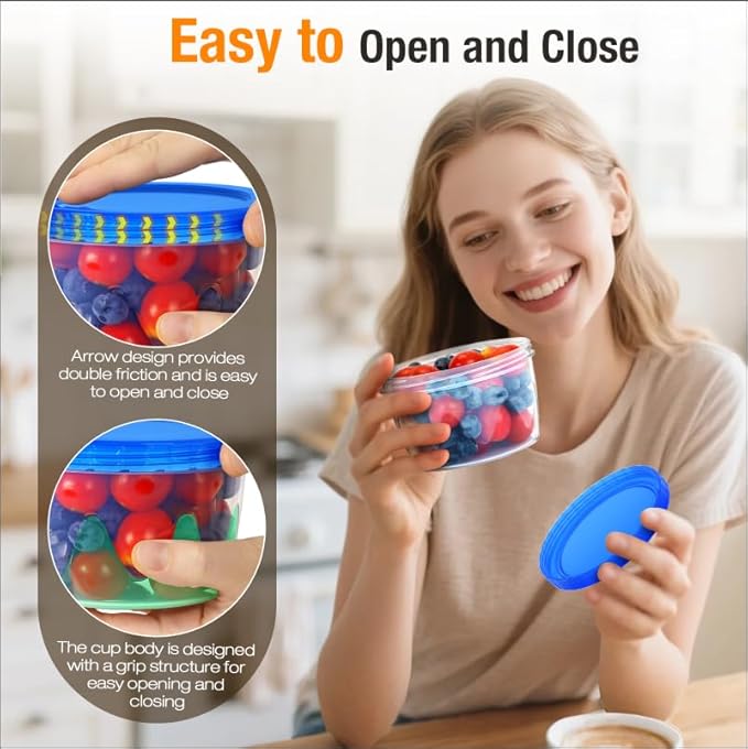 - Flexible Storage: Save space and effort! This soup cup is stackable and nestable, measuring only 1.2 times the height of a single cup. Compared to traditional containers, plastic bowls takes up 60% less storage space and fits easily in cupboards and drawers. Best of all, the lid is compatible with all sizes, significantly improving storage and usage efficiency.