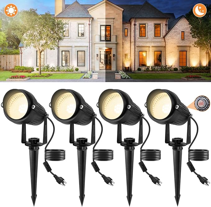 Dusk to Dawn Outdoor LED Spotlight, Outdoor Landscape Lighting with Photocell Sensor, 3000K Warm White Waterproof Spot Lights for Yard Flag Pole House Garden Tree(4 Pack)