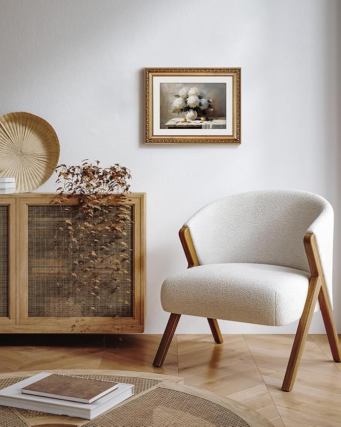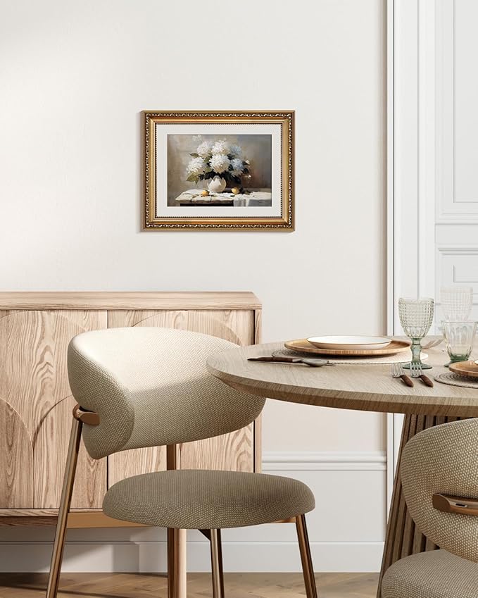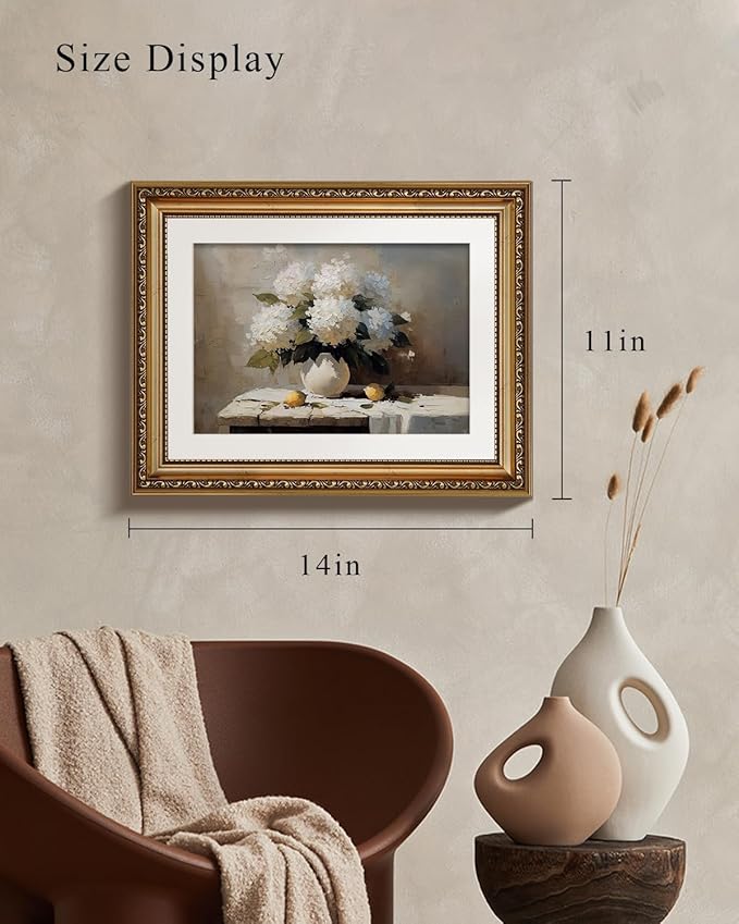 VIYYIEA Gold Framed Wall Art, Hydrangea Canvas Print Home Decor Vintage Art Painting Picture Bathroom Wall Decor, Flowers Artwork for Living Room Bedroom Kitchen Office - 14L x 11W