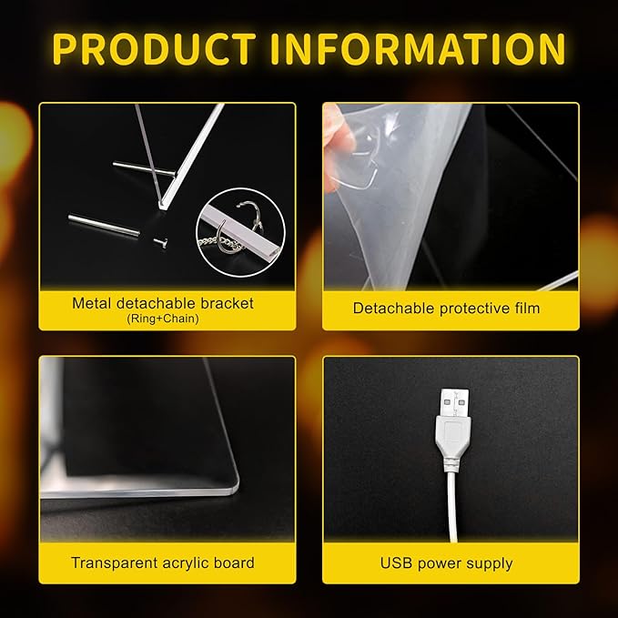 - ⨠Sleek & Durable for Any Space: Crafted from premium acrylic dry erase board material, this LED note board adds modern style to any space. Use it for grocery lists, chore charts, or business promotions ā built to last for busy homes or shops.