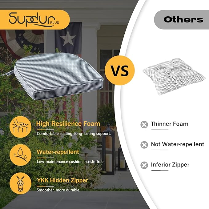 - Non-slip Ties & Piped edge: There are 2 straps on each side of the outdoor furniture cushions to keep stable and feature piped edges for a polished look and superior durability.