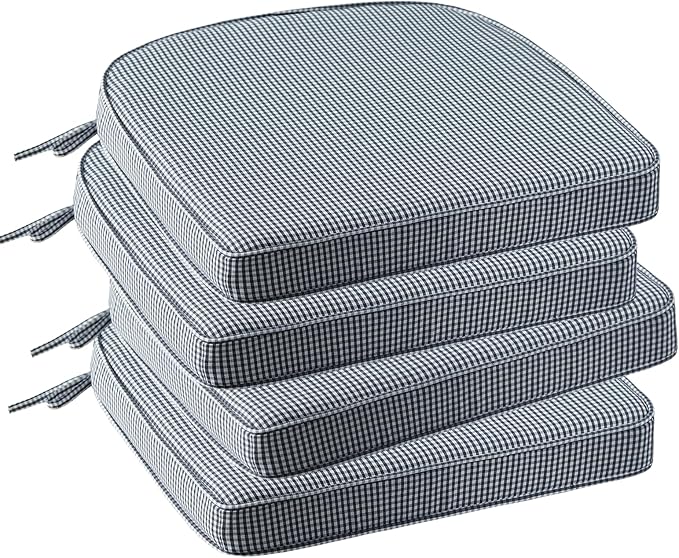 Outdoor Round Corner Seat Cushion, 17"x16"x2", Set of 4, Non Slip Seat Cushion Pads with Removable Cover for Patio Furniture, Garden Yard Lawn, Black White Mini Check