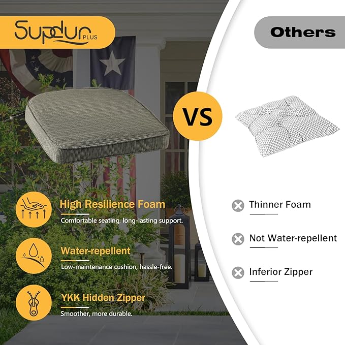- Easy Care: The cover of the outdoor chair cushion is removable and easy to clean. As the cushions are vacuum-packed, simply press and tap them for a while after unpacking, and they will restore their fluffiness within 5 days.