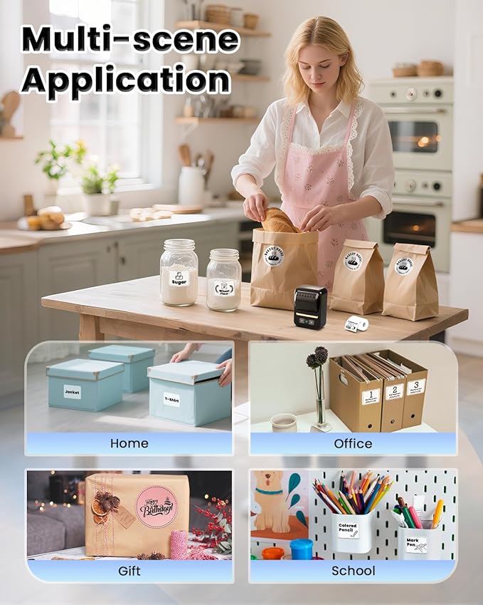 - 𝐖𝐢𝐝𝐞𝐥𝐲 𝐔𝐬𝐞𝐝 𝐟𝐨𝐫 𝐁𝐮𝐬𝐢𝐧𝐞𝐬𝐬 𝐚𝐧𝐝 𝐎𝐟𝐟𝐢𝐜𝐞: The N20 thermal label maker machine supports printing labels that are 3/4 inch-2 inch wide, use for small businesses (price tags, brand logo, product information, barcodes, QR codes, address labels), for office and school (folders, dates, name tags, item identification), for home organization (food container, kitchen storage, cosmetics marking).
