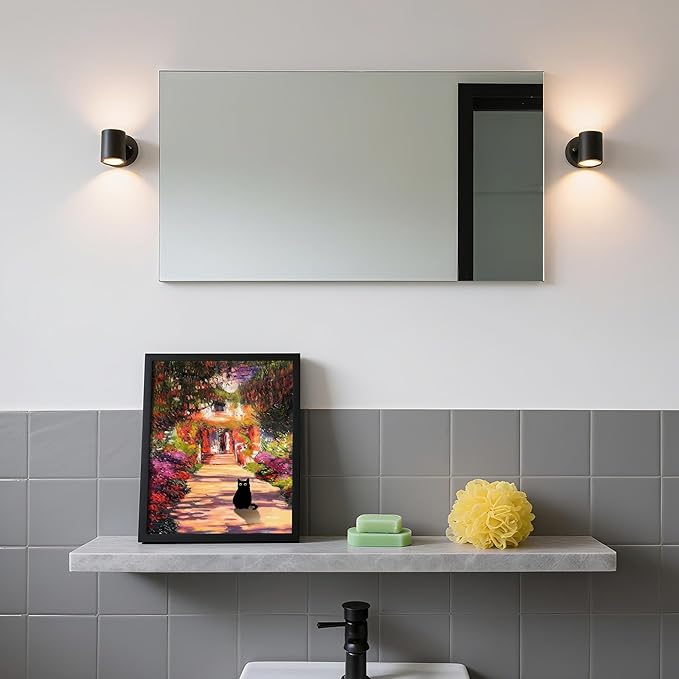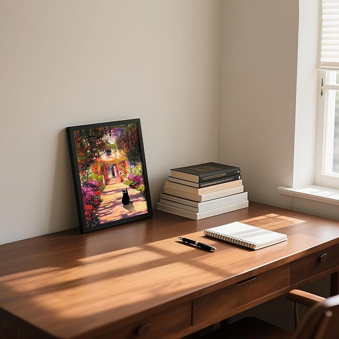 Krtoni Framed Vintage Monet Garden Cat Canvas Wall Art, Famous Oil Paintings Monet Flowers Black Cat Wall Decor, Cute Kitten Lovers Aesthetic Print For Farmhouse Gallery Bedroom Bathroom 10''L x 8''W