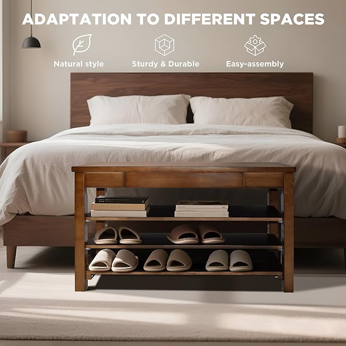 - ✔️Built to Last: Heavy-Duty Construction Crafted from solid rubberwood, this shoe rack with bench supports up to 550 lbs—offering rock-solid stability for years of daily use. Durable enough for families, yet stylish enough for any room.