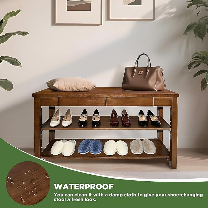 - ✔️Built to Last: Heavy-Duty Construction Crafted from solid rubberwood, this shoe rack with bench supports up to 550 lbs—offering rock-solid stability for years of daily use. Durable enough for families, yet stylish enough for any room.