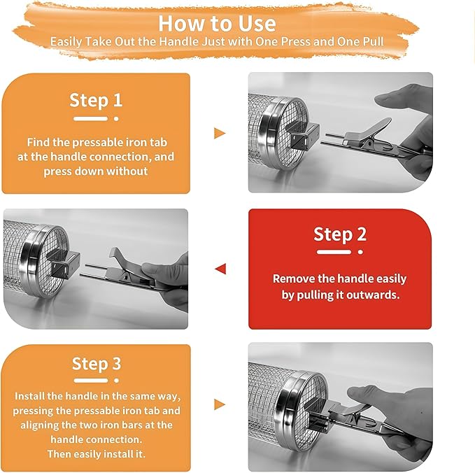 - 【Removable Iron Handle】Our grill baskets for outdoor grill come with detachable iron handles that are sturdy, heat-resistant, and built for long-term use. Designed with threaded connections, the handles are easy to install and remove, offering added convenience for grilling and storage. Reinforced attachment points ensure that the grill baskets stay stable during outdoor cooking sessions.