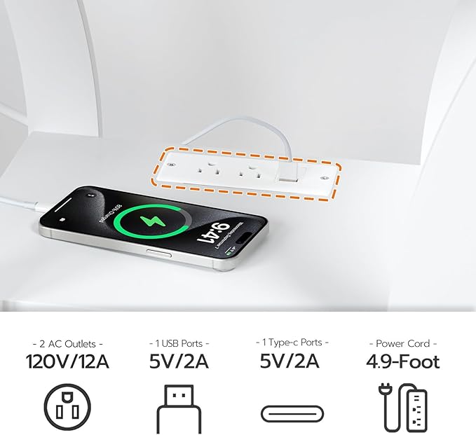 - Convenient Charging Station: The side table has a power strip with 2 AC outlets, 1 USB, and 1 Type-C port, meeting various charging needs efficiently and safely. The strip is neatly placed on the second layer, saving space and keeping the desktop tidy