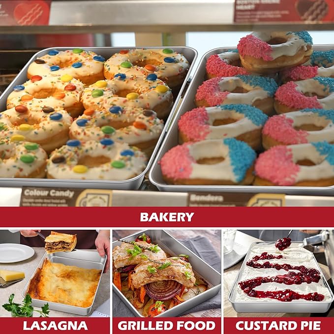 - Baking Gifts & Versatility: stainless steel baking sheet is the perfect gift for Christmas and housewarming parties, for friends, mothers, and loved ones. Lasagna pan has an excellent size that is ideal for baking various bread recipes, such as baking cakes, casseroles, desserts, lasagna, and roasting chicken, fish, and vegetables