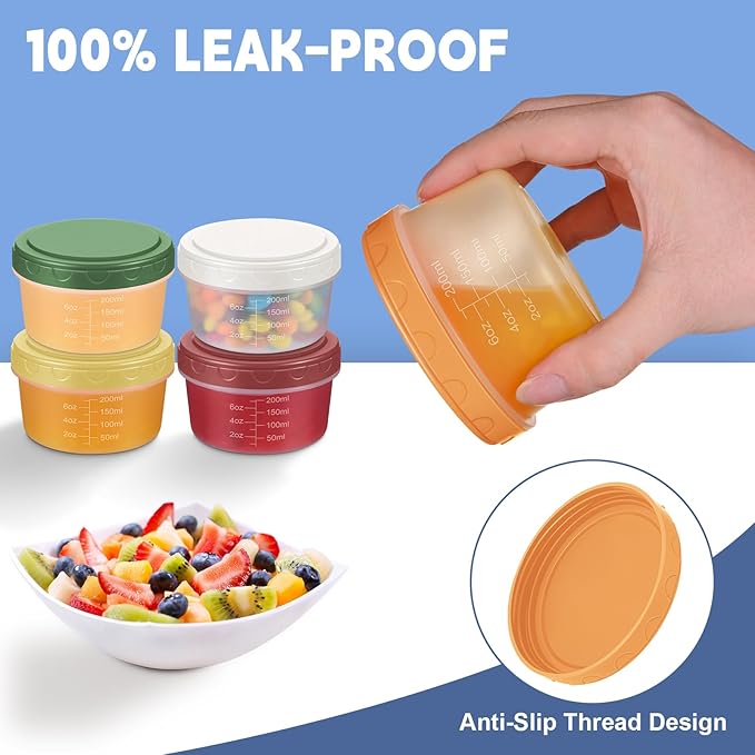 - Leak-proof Design: Salad dressing containers are designed with screw-on lids for a tight seal to keep food fresh. The airtight lid prevents spills, keeping sauces and dips securely contained. No more worries about messy leaks in lunch bags, coolers, or storage spaces, ensuring cleanliness and convenience for on-the-go use