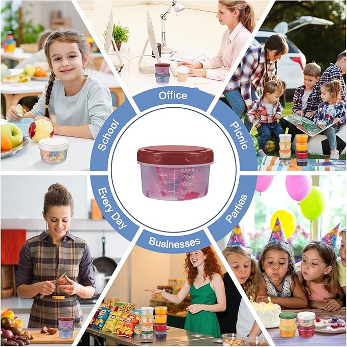 - 10 oz Compact Size: These 10 oz plastic containers with lids are perfect for storing condiments, dips, sauces, purees, fruit, oats, snacks. Their compact size is perfect for lunch boxes, bags, and the refrigerator. The reusable condiment cups are easy to carry for lunches on the go for work, travelling, camping and more