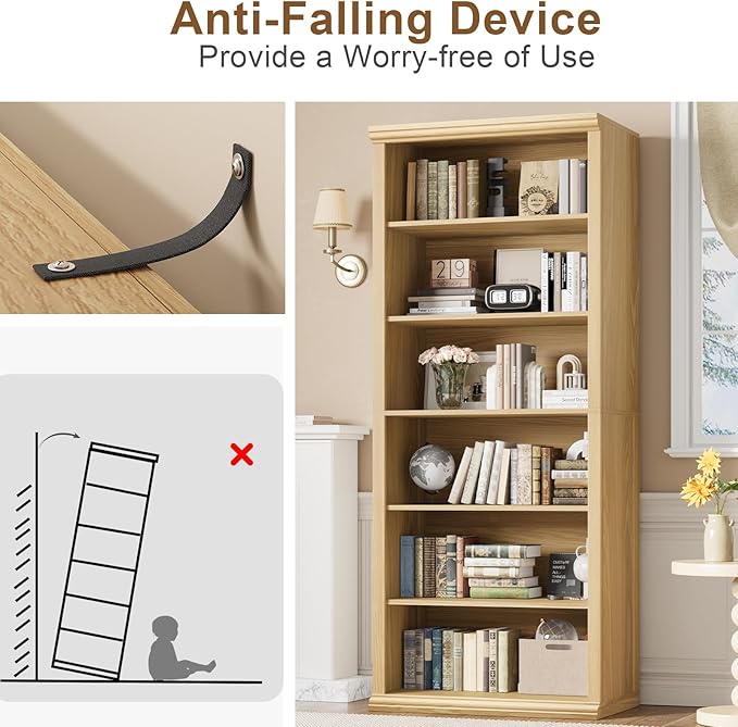 Rresyet Bookcase and Bookshelves, 28" W Tall Bookshelf with Elegant Design, 6 Tiers Spacious Book Storage, Freestanding Book Organizer, Display Library Shelf for Home Office, Living Room & Study Room