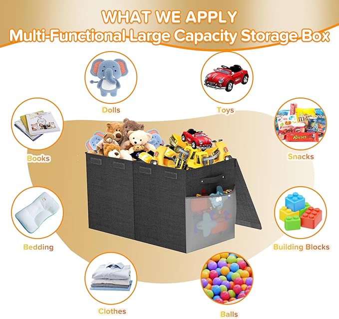 - EXTRA LARGE STORAGE CAPACITY: Our Toy Box Chest Storage Organizer measures up to 25 x 14 x 16 inches and has a capacity of more than 90L, large enough to store all the toys for boys and girls such as plush toys, toy cars, blocks, clothes, books, miscellaneous items and so on, say goodbye to clutter and keep your room neat and clean!