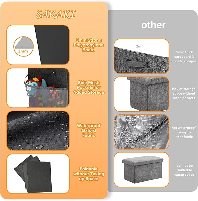 - HIGH QUALITY CHILDREN'S TOYBOX: This Large Toy Box Chest with Lid is made of high quality wear-resistant Oxford cloth which is not easy to tear, and 3mm high quality sturdy PP board with stronger impact resistance, which can withstand a weight of 30-50 kg, providing unparalleled strength and stability. Rivet-reinforced handles make it easy to move the Toy Box around, while pockets on both sides provide flexible access to small items.