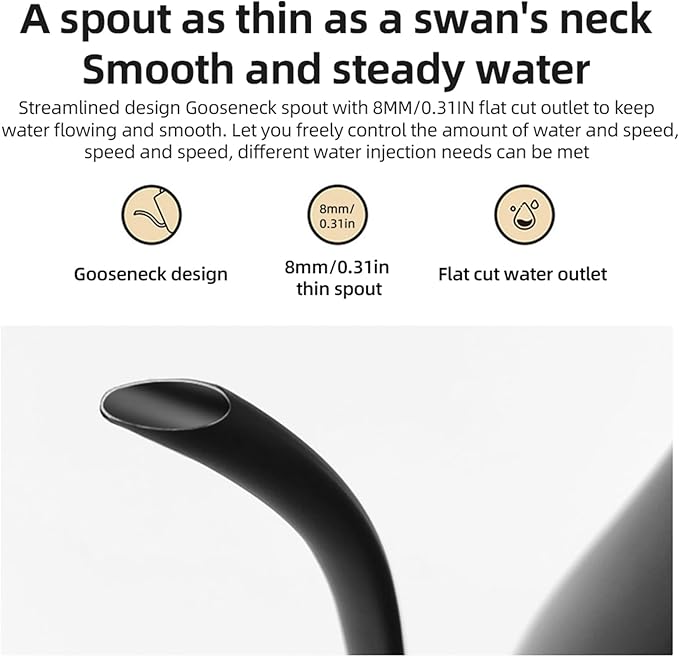 - 【Precise Pouring & Ergonomic Design】: The gooseneck kettle design offers precise pouring control, making it for making pour-over coffee or tea. Its long neck and fine spout allow for a steady and controlled , ensuring precision and avoiding spills.