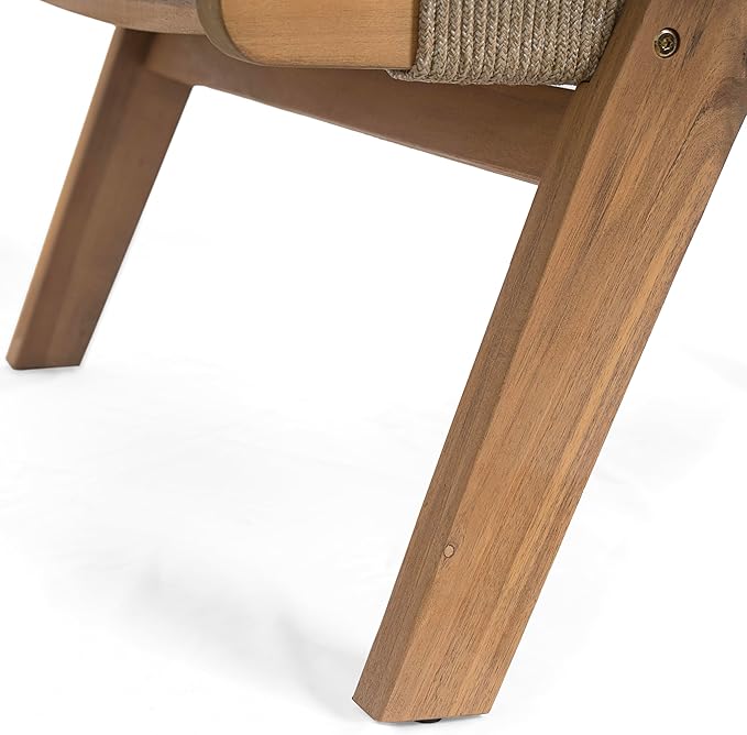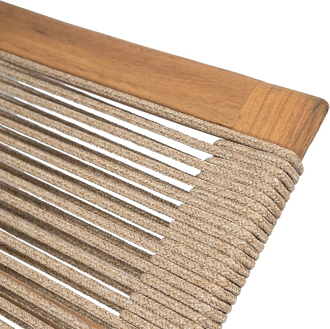 - 【Reclining Wood and Rope Chaise Lounges】This chaise lounge set is supported by the wood frame which is a solid, heavy frame that naturally withstands the elements and resists wear and tear. The seating complemented by rope, which can let your skin comfort, and high elastic support to maintain no collapse