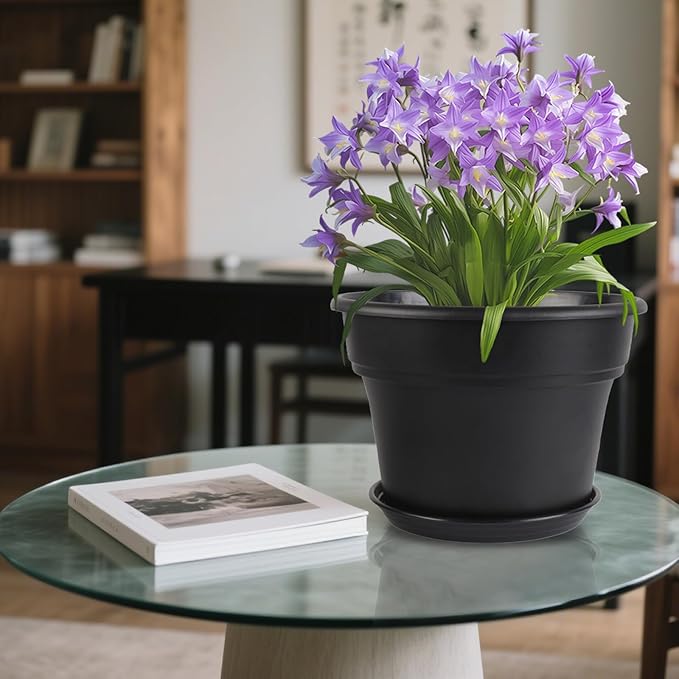 - 【Excellent Drainage and Tray】8'' plastic pots for plants are equipped with pre-drilled drainage holes and a removable saucer, these indoor planting pots ensure proper water flow, prevent root rot, and protect surfaces from excess moisture. Saucers capture overflow water for easy cleanup.