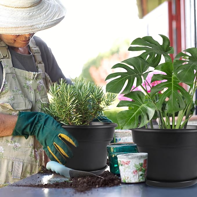 - 【Multi - Usage】Designed for versatile use, coming in various size, plastic planters for outdoor plants are perfect for cultivating flowers, herbs, and vegetables, such as Bird of Paradise, Serpentine Moonflower, Majesty Palm, Succulents. These outdoor flower pots set is a perfect gift for your elders, friends and some other who like to decorate garden to enjoy the planting process. Plant pots outdoor is suitable for weddings, birthday, party, anniversary, Christmas, thanksgiving.