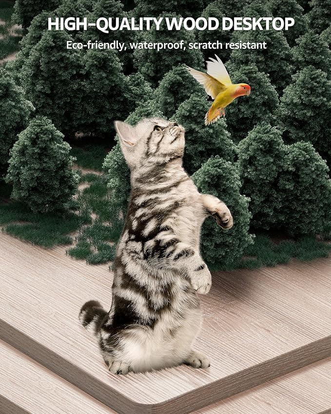 - Organize Your Workstation : 55"x24" eco-friendly desktop provides you with a spacious workspace. (The 40-inch version is a whole-piece) Integrated cable management tray and hooks for headphones or bags, ensuring a tidy workspace. Say goodbye to cable chaos and focus on what matters!