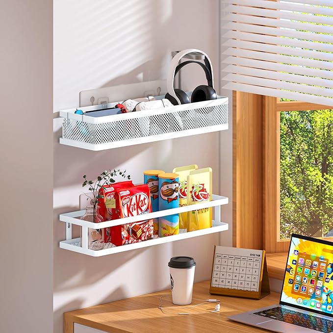 - 【MULTI-PURPOSE&MULTIFUNCTIONAL】5 Hanging Storage Baskets Organizer Set for Sufficient Bathroom Kitchen Storage Space, The bathroom&Kitchen organizer comes with 5 pieces for different uses, including 2 Hanging Storage Baskets, 1 soap holder,1 Tissue holder ,1 utensil holder and 2 adhesives. The perfect solution for organizing a multitude of every items indoor or outdoor. The cabinet organizer hanging baskets wall mount is Ideal for organizing and storing spice bottles, pantry items, snacks, toiletries, tools, craft supplies,etc. And this metal bin basket free up enough space for your homes, kitchen, living room, bathroom, camper, farmhouse, apartments, college dorm rooms, etc.