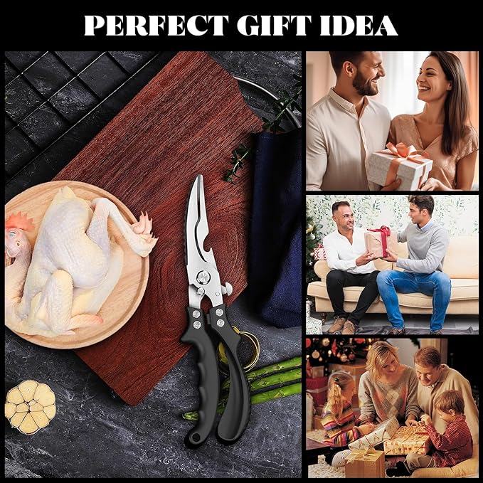 - Tired of struggling with dull, flimsy scissors that can't handle chicken bones or shrimp shells? Our 3CR13 steel kitchen shears cut through meat and seafood effortlessly. No more hand fatigue, slippery grips, or frustrating cleanups. Backed by our satisfaction guarantee - if it doesn't make your kitchen prep easier, we'll make it right