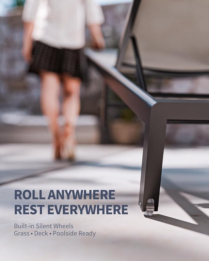 - 【Dual-Wheel Mobility】The aluminum deck lounger is convenient to glide from morning coffee spots to afternoon garden shade with the added smooth-rolling wheels at the base. Effortlessly reposition your chaise recliner single-handedly across lawns/pool decks/terraces.