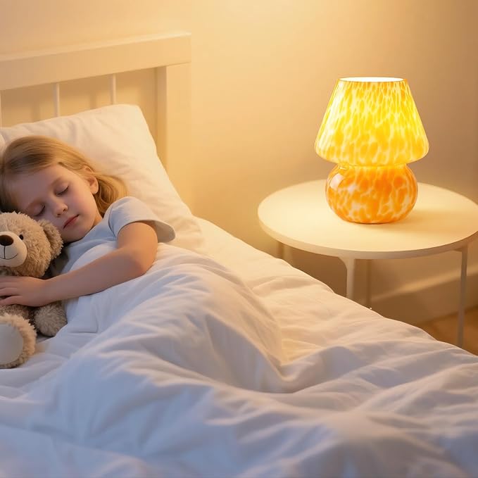 - 【 Table Lamps with Wide Application】This cute mushroom night light isn’t just a small decorative lamp.It’s a sleek glass lamp that works great in bedrooms, nurseries, cafes, and more. It also makes a perfect gift for holidays, birthdays, or Christmas.