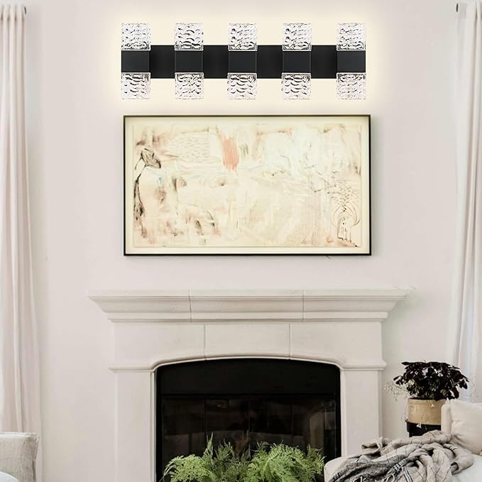 - Elegant Design: Modern bathroom led vanity lights perfect combination of sleek black metal metal base and unique pattern crystal column create a modern yet luxurious aesthetic. When lit, it will cast a warm and beautiful lighting glow. Even when turned off, it can showcase a elegant atmosphere for decoration