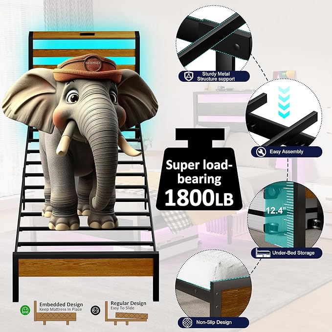 - 【Multi-functional LED Light Bed Frame】Experience sophistication with the led twin bed frame, heightened by vibrant multi-colored RGB LED light strips. Utilize the mobile app to explore a spectrum of over 60,000 colors, and customize brightness, color. According to your preferences. Creating a romantic and dynamic party atmosphere.