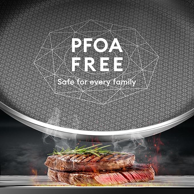- 【Hybrid 12-Inch Nonstick Skillet – Family-Sized Cookware】The most-used pan in your kitchen! This large 12-inch skillet handles family dinners, one-pot pasta, or frying chicken. Deep sides prevent spills, and the stay-cool grip ensures safety