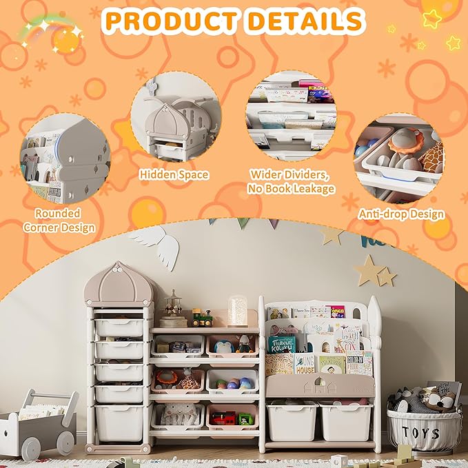 - 【Open Storage Design】: The kid's toy storage combines the design of the castle shape to increase visual interest. The open storage design makes it easier for children to see toys or books, keeping beloved toys and books at their fingertips. It is the best gift for kids.