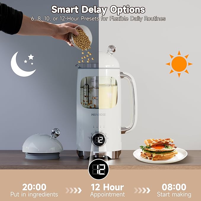 - 🕒【Nut Milk Maker Machine with Smart Preset Timer】 Enjoy fresh drinks right when you need them with programmable delay start. Choose from 6, 8, 10, or 12-hour presets and take advantage of the 2-hour keep-warm feature for maximum convenience in your daily routine.