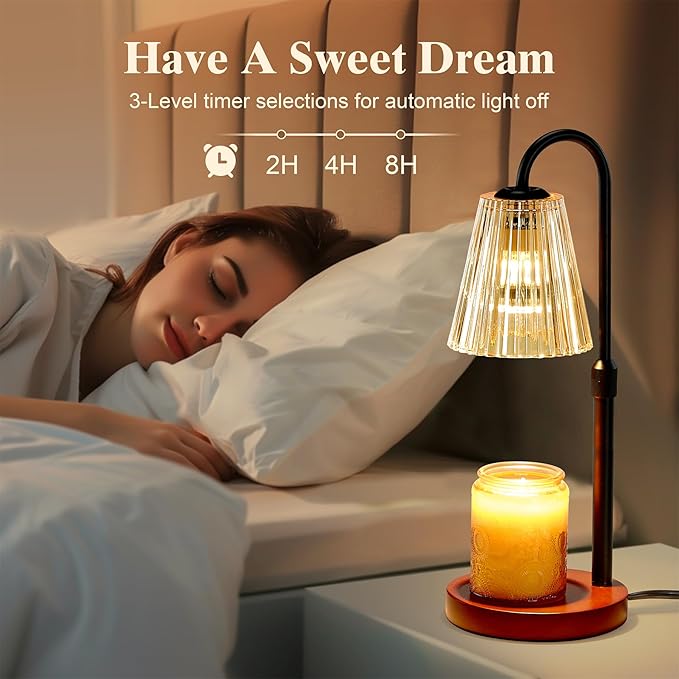 - 【Timer & Settings Memory】This candle warmer lamp features a 3-mode timer (2/4/8 hours), ensuring worry-free operation during sleep, outings, or cooking sessions. Its intelligent memory function preserves your last settings preference, seamlessly transitioning between decorative ambiance, reading sessions, sleep routines, and yoga practices. This candle lamp recalls your customized settings, effortlessly adapting to your evolving lifestyle needs while ensuring complete candle safety.