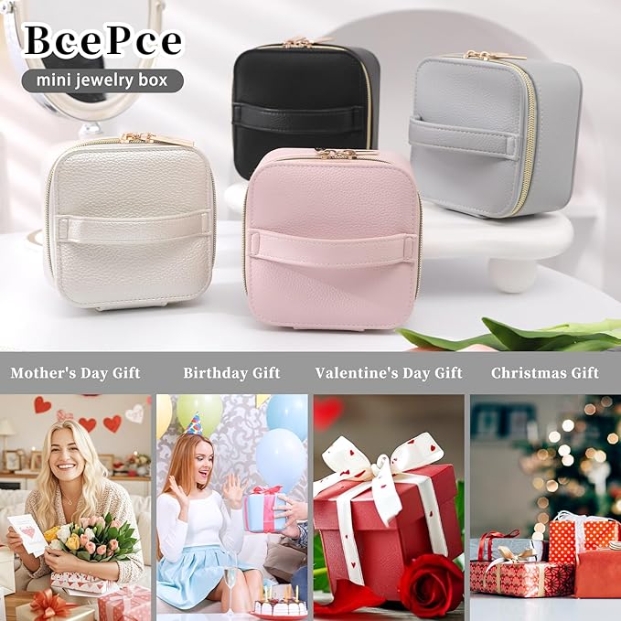 - 【High Quality Materials】 BcePce jewelry travel storage box is Crafted from premium lychee-grain PU leather, which combines a luxurious matte finish with lightweight, scratch-resistant durability. The waterproof surface shields your valuables from spills and humidity, making it ideal for flights, beach trips, or daily commutes. Gliding two-way zippers for one-hand access. Plush velvet interior with dedicated slots prevents tangles and scratches. A sleek companion for those who refuse to compromise between appearance and functionality