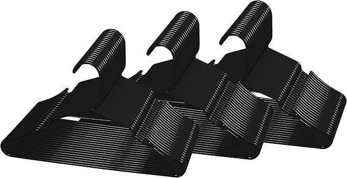 Royale Linens 60 Pack Black Plastic Hangers for Clothes - Heavy Duty Clothes Hanger for Everyday Use - Lightweight & Space Saving Notched Plastic Hangers
