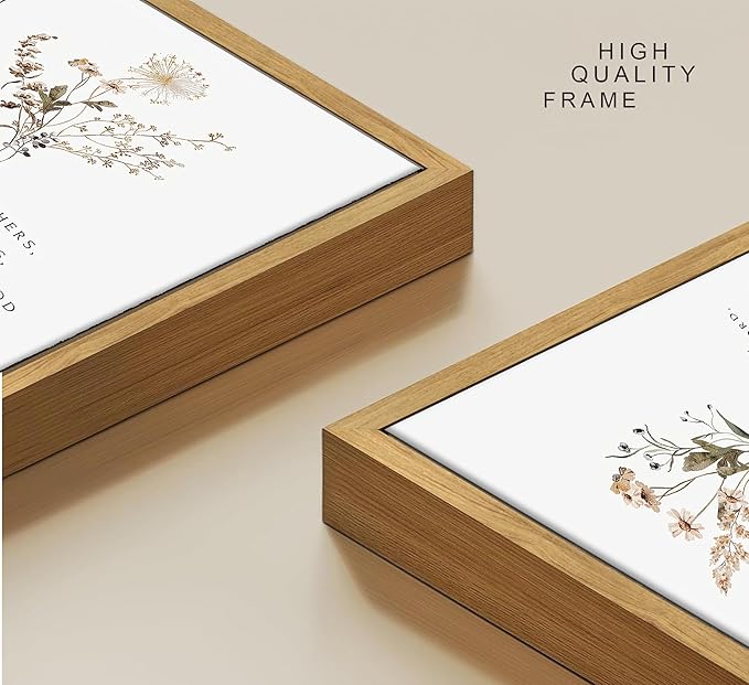 Framed Wildflower Bible Floral Canvas Wall Art Christian Verses Floral Paintings Pictures Decor Botanical Scripture Room Posters Prints for Bedroom Living Room Office Christian Scene Home Decorate