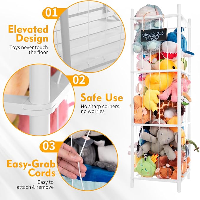 - 【Space-Saving】This large stuffed animal zoo keeps all plush toys tidy, visible, and easy to grab. Holds over 60 toys to free up space in any kids’ room, while encouraging children to take charge of their own clean-up—making organization simple, fun, and rewarding