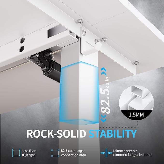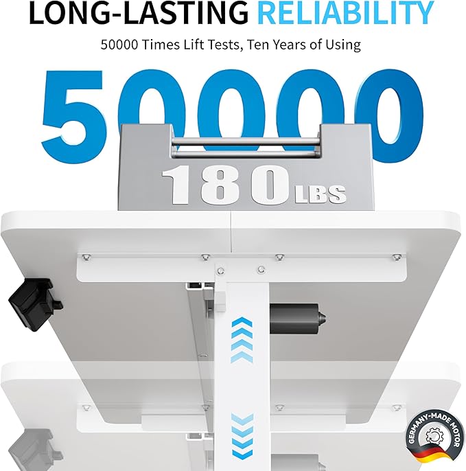 - Stable & Sturdy Design: This electric standing desk boasts a powerful motor that lifts at 0.8" per second and has been rigorously tested 20,000 times. This office desk cold-rolled steel frame supports up to 132 lbs, with a recommended daily use capacity of 180 lbs
