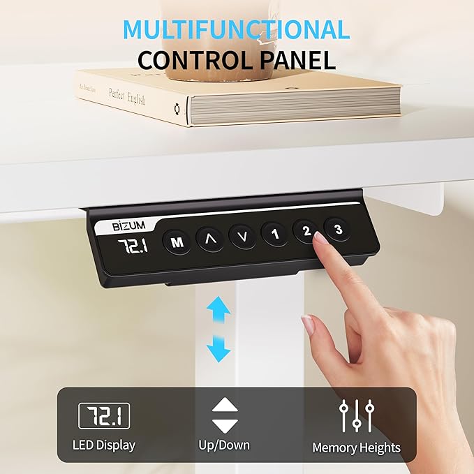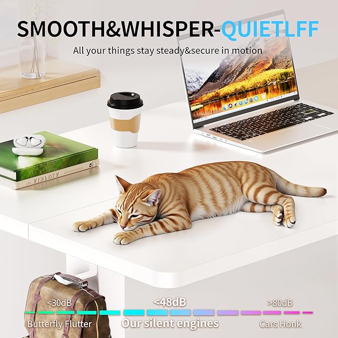 - Height Adjust Smoothly: This adjustable standing desk with 3 memory presets, you can easily save and recall 3 customizable heights for sitting and standing with a single button press. The escritorio adjusts smoothly from 27.5" to 45.7" with low noise <48 dB. So that won't influence families and pet rest
