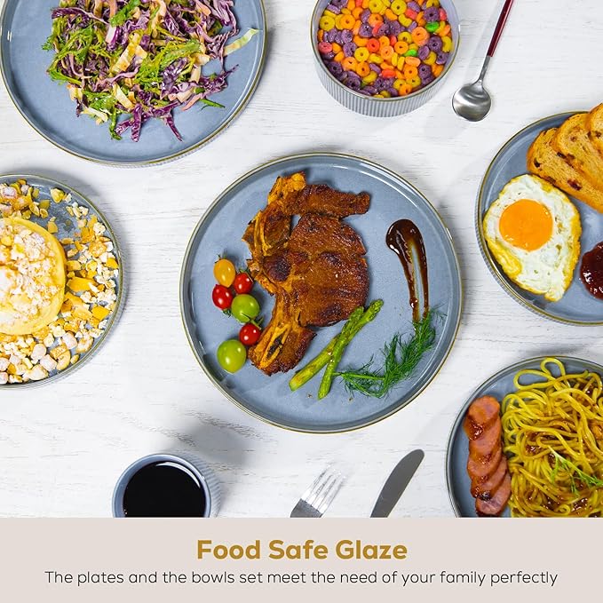 - Safe & Sustainable Dinnerware:Made from premium, organic natural clay, our stoneware is 100% lead-free and cadmium-free, guaranteeing safety for your family and the planet. Enjoy everything from hearty steaks to delicate desserts with absolute peace of mind.Fired at 2552°F for 13.5 hours, our dishes are extra-thick and heavyweight, resisting chips, scratches, and wear. They’re built to endure daily use