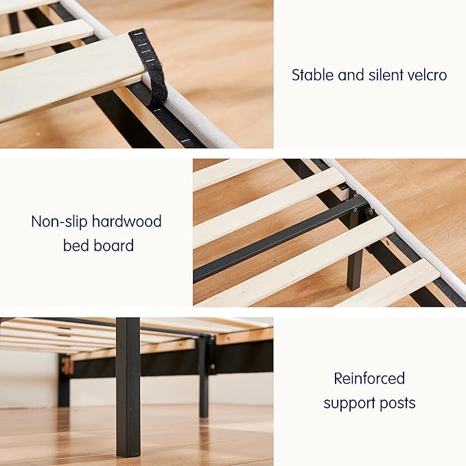 - Under-Bed Storage Space:With 6.3 inches of clearance beneath the frame, conveniently store bins, blankets, or seasonal items. Maximize your bedroom space without compromising on style or functionality.
