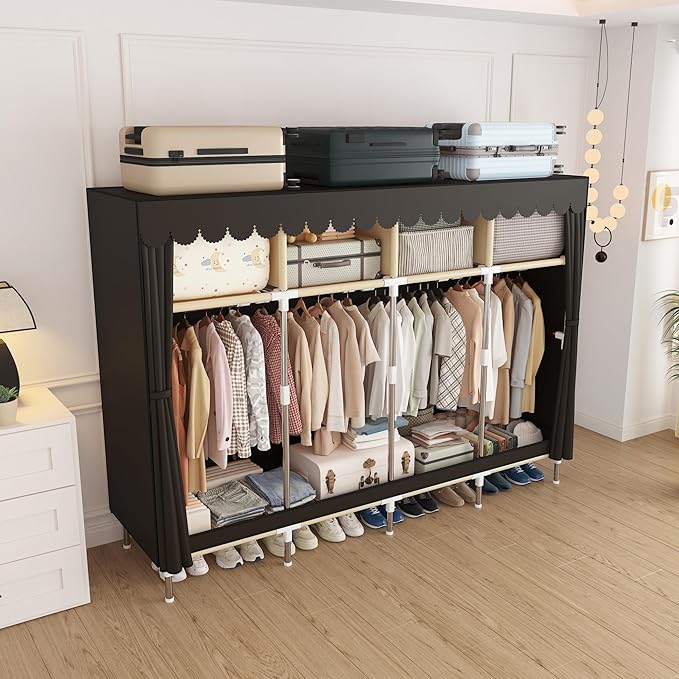 - 【Durable Material Design】: the ArluKin metal wardrobe closet Crafted from high-quality galvanized and sturdy PP plastic joints, our wardrobe provides exceptional load-bearing stability without wobbling. Its superior durability far surpasses standard racks. The breathable non-woven dust cover keeps your clothing clean and protected from dust while the user-friendly zipper closure ensures easy access to your items.